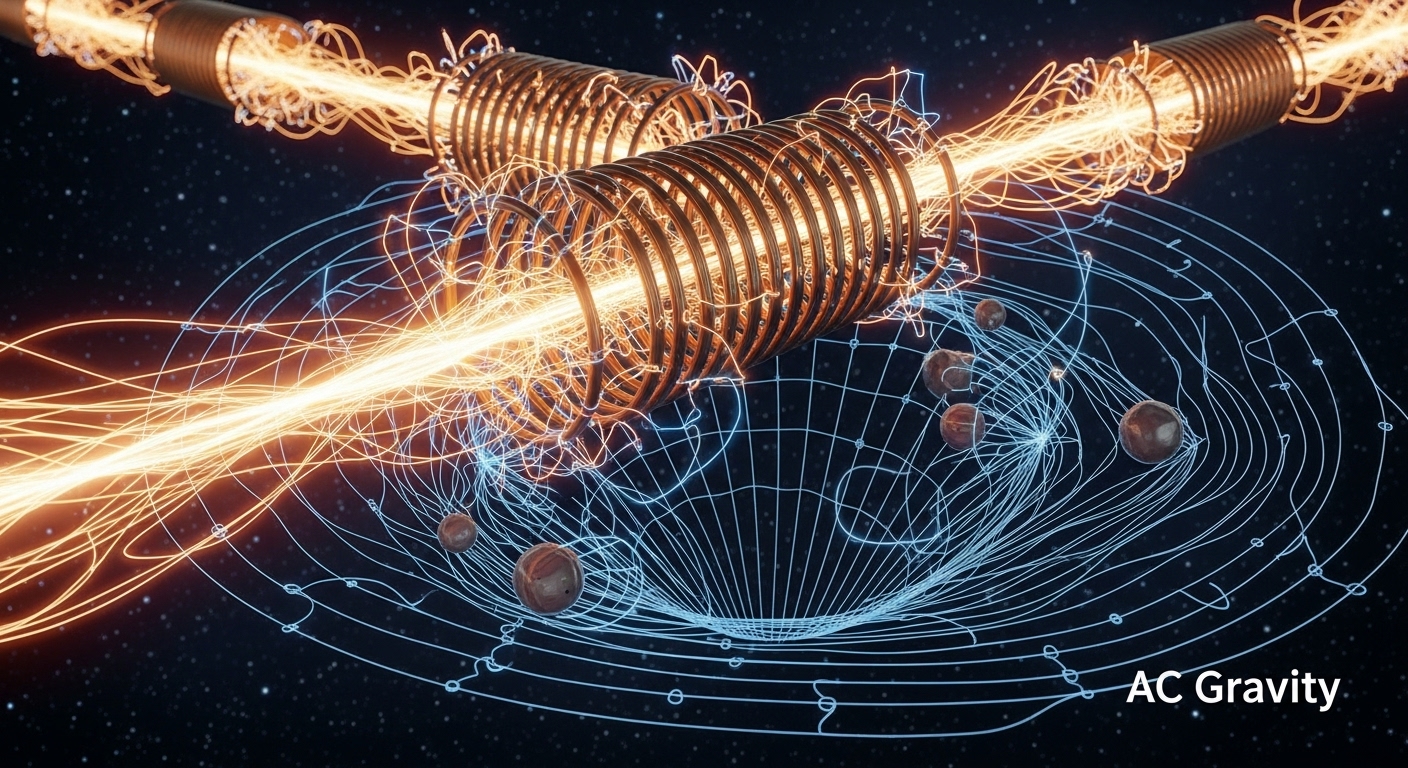 To begin with, AC gravity is the manipulation of gravitational fields using alternating current within rotating superconductors. Dr. Ning Li proposed that a rotating ionic (attraction of oppositely attracting ions) superconductor could produce a gravitomagnetic field. Consequently, this distorts spacetime similarly to magnetism caused by a mass in motion. This concept aligns with Einstein's field equations but has never been publicly demonstrated in a lab.