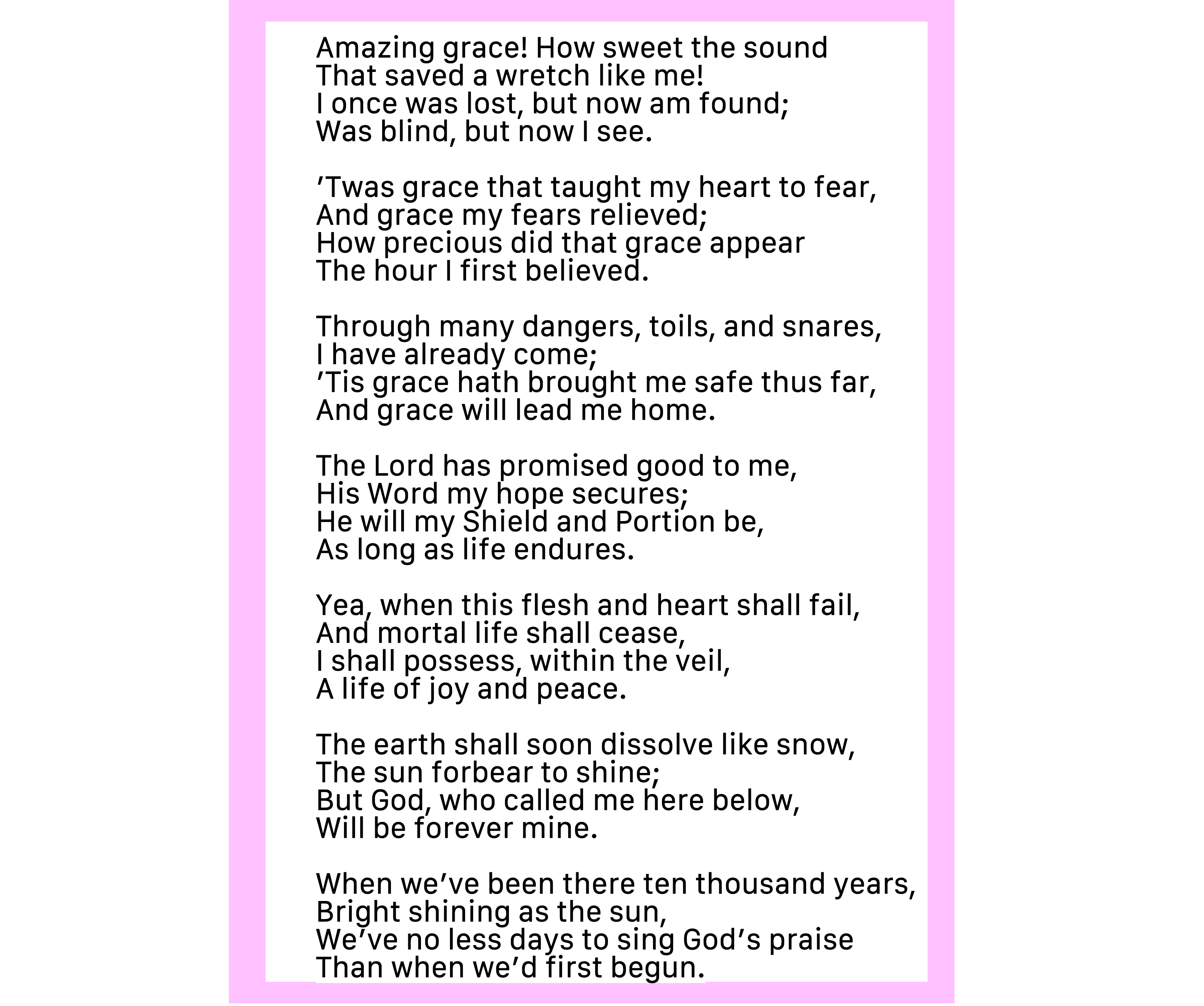 How precious did that Grace appear The hour I first believed.