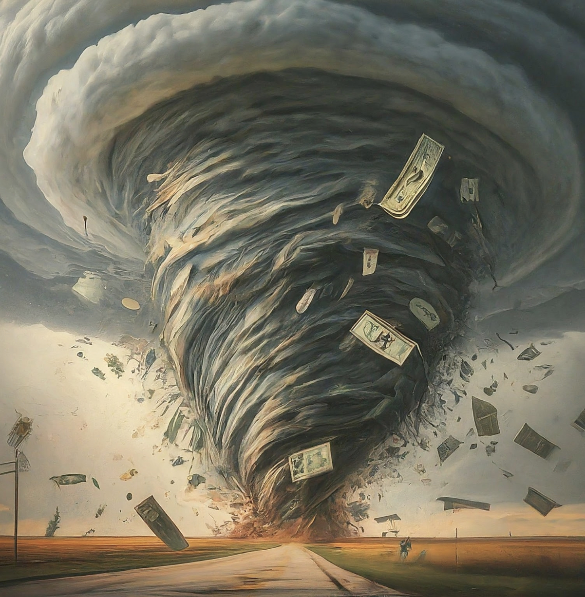 Kansas is considered the Heartland of America, the geographical center of the USA. Enter the twister, the tornado, i.e., whirling confusion of the stock market crash that left everybody economically